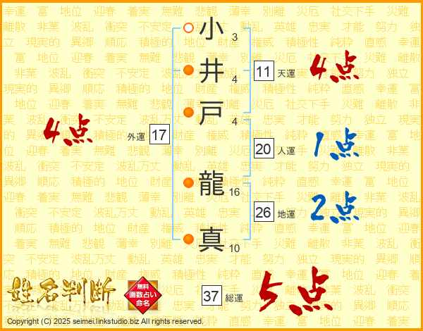 小(3画)井(4画)戸(4画) 龍(16画)真(10画)