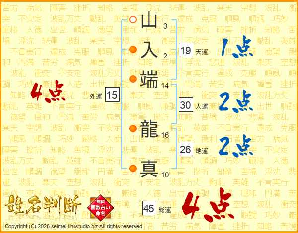 山入端龍真さんの総運は45画の4点!