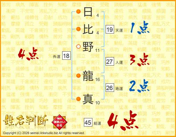 日比野龍真さんの総運は45画の4点!