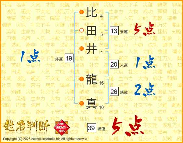 比(4画)田(5画)井(4画) 龍(16画)真(10画)