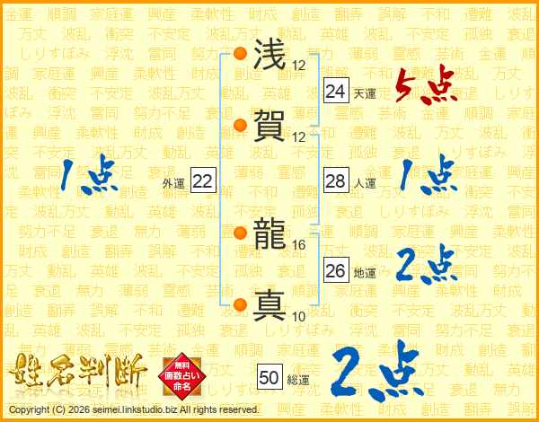 浅賀龍真さんの地運は26画の2点!