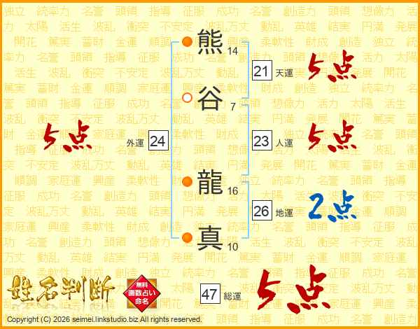 熊谷龍真さんの総運は47画の5点!