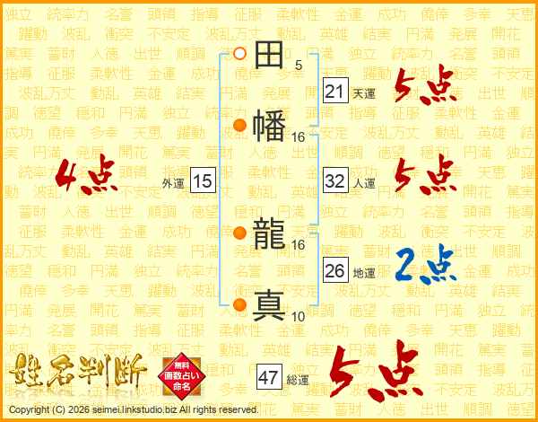 田幡龍真さんの総運は47画の5点!