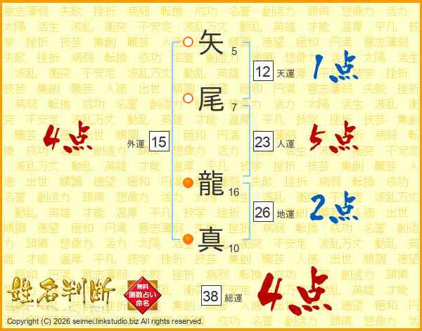 矢(5画)尾(7画) 龍(16画)真(10画)