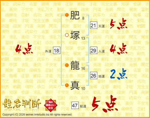 肥塚龍真さんの総運は47画の5点!
