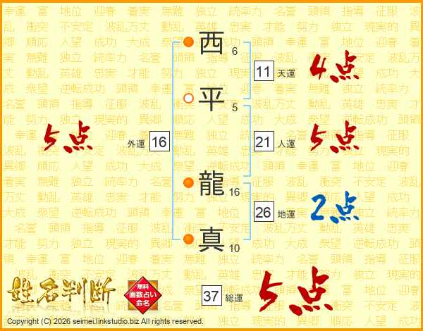 西平龍真さんの総運は37画の5点!