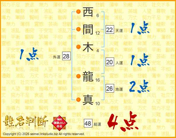 西間木龍真さんの総運は48画の4点!