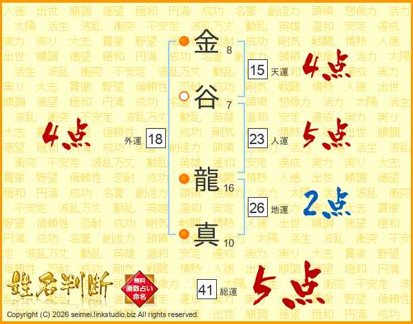 金谷龍真さんの総運は41画の5点!