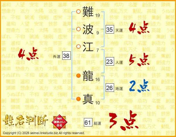 難波江龍真さんの外運は38画の4点!