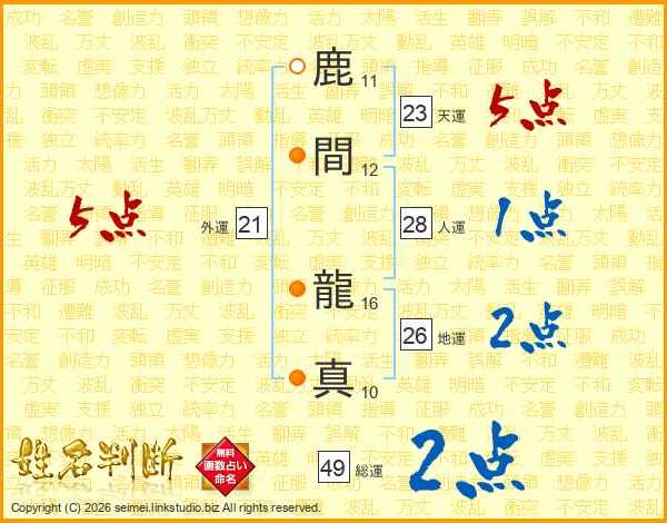 鹿間龍真さんの総運は49画の2点!