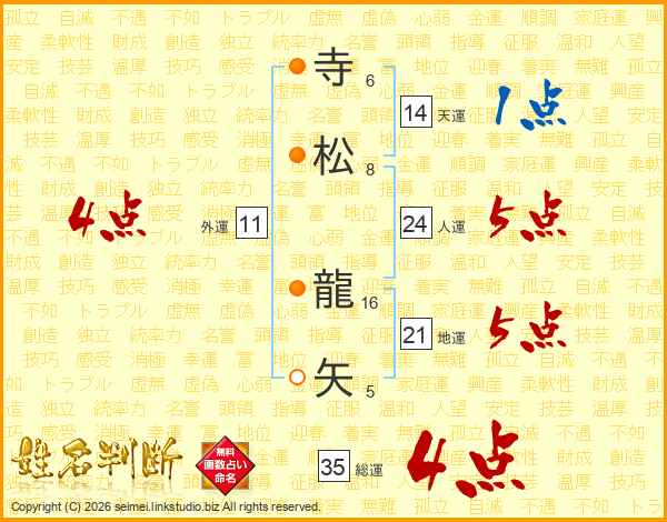 寺(6画)松(8画) 龍(16画)矢(5画)