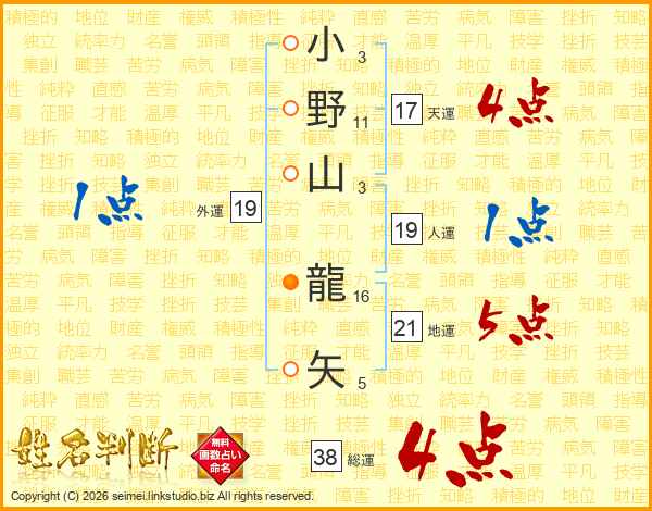 小野山龍矢さんの総運は38画の4点!