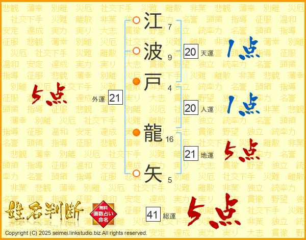江(7画)波(9画)戸(4画) 龍(16画)矢(5画)