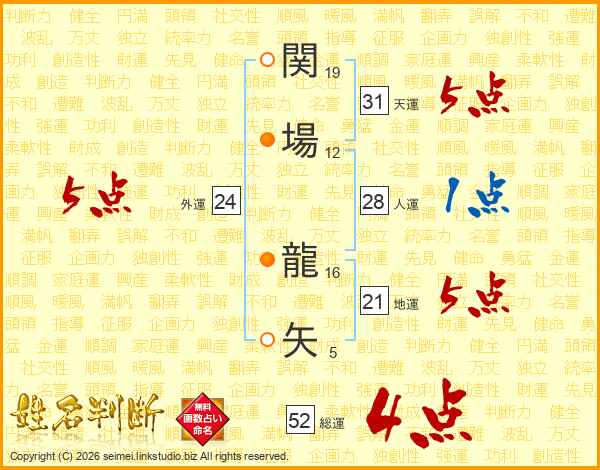 関場龍矢さんの天運は31画の5点!