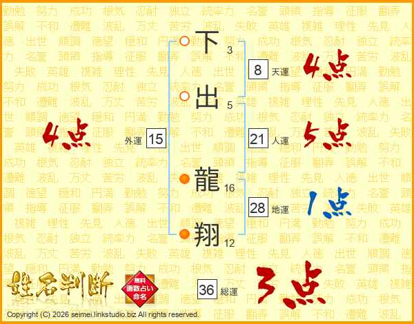 下出龍翔さんの総運は36画の3点!