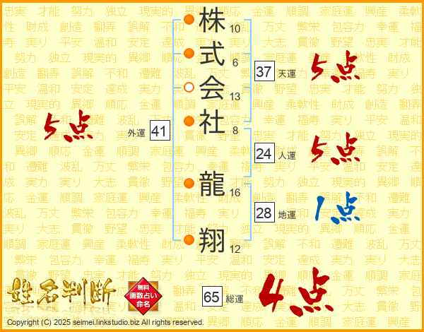 株(10画)式(6画)会(13画)社(8画) 龍(16画)翔(12画)
