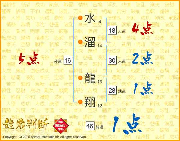 水溜龍翔さんの総運は46画の1点!