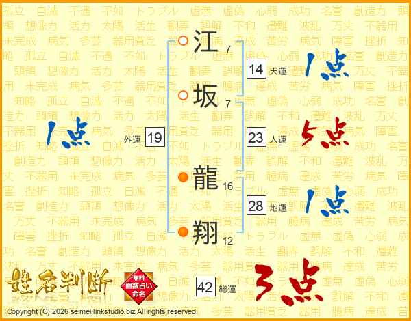 江(7画)坂(7画) 龍(16画)翔(12画)