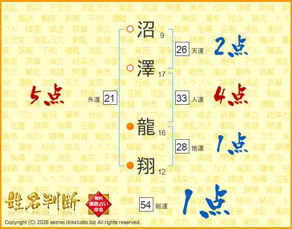 沼澤龍翔さんの総運は54画の1点!
