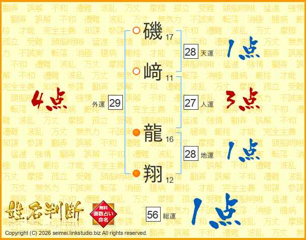 磯﨑龍翔さんの総運は56画の1点!