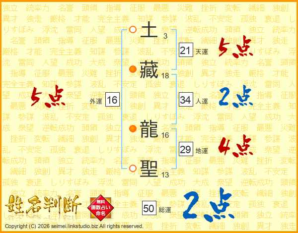 土藏龍聖さんの総運は50画の2点!