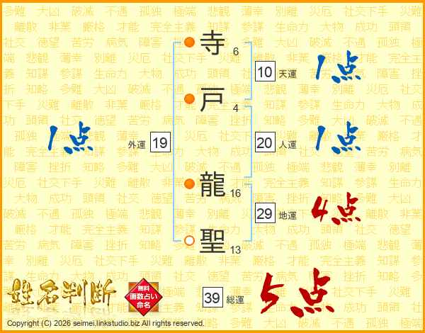 寺(6画)戸(4画) 龍(16画)聖(13画)