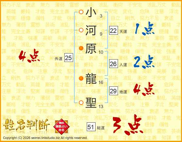 小河原龍聖さんの地運は29画の4点!