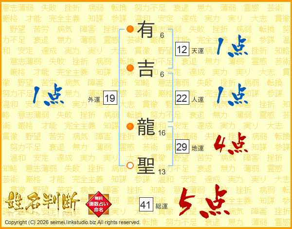 有吉龍聖さんの総運は41画の5点!