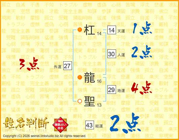 杠龍聖さんの天運は14画の1点!