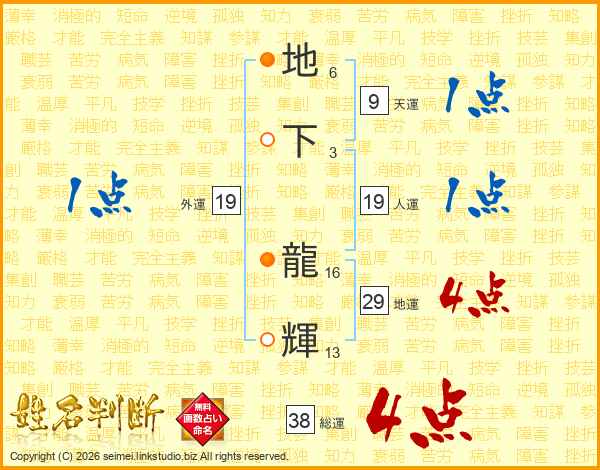 地下龍輝さんの総運は38画の4点!