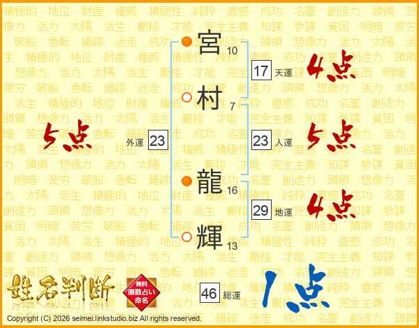 宮村龍輝さんの総運は46画の1点!