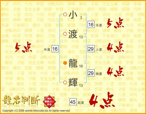 小渡龍輝さんの総運は45画の4点!