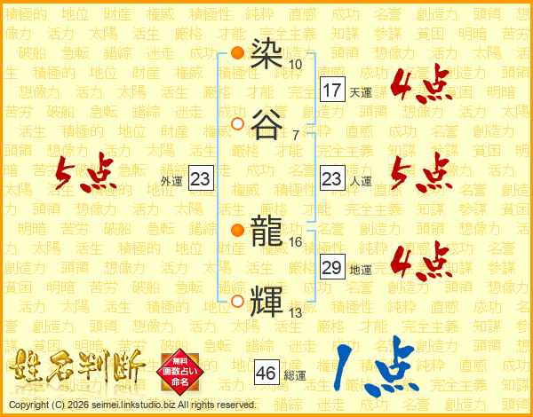 染谷龍輝さんの総運は46画の1点!