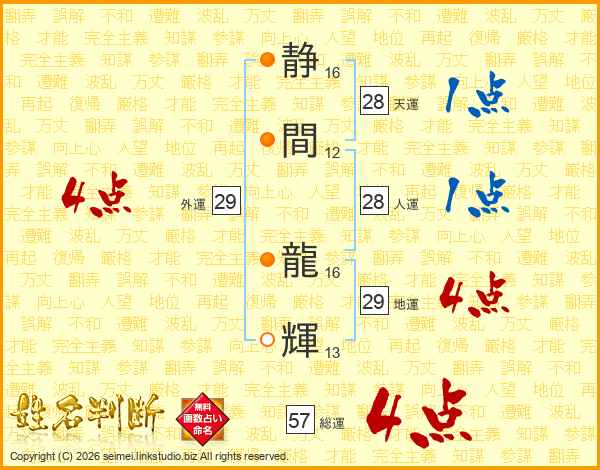 静間龍輝さんの総運は57画の4点!
