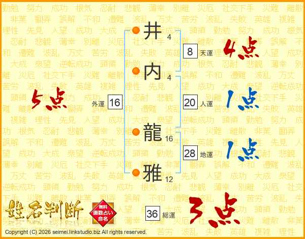 井(4画)内(4画) 龍(16画)雅(12画)
