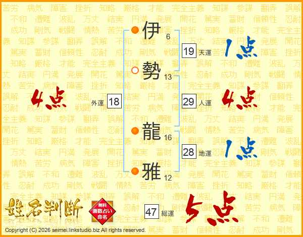 伊勢龍雅さんの総運は47画の5点!