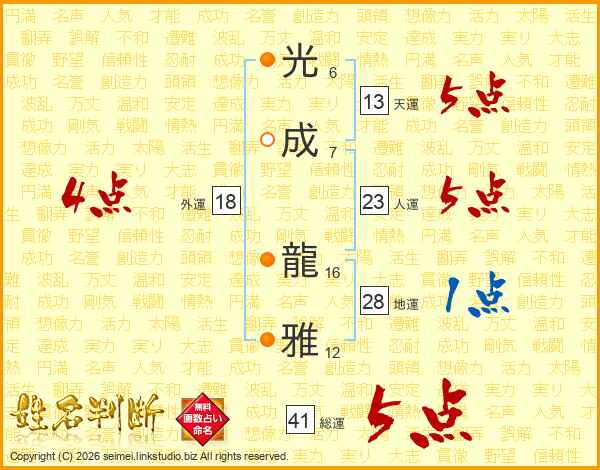 光成龍雅さんの総運は41画の5点!