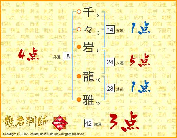 千々岩龍雅さんの人運は24画の5点!