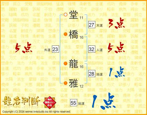 堂(11画)橋(16画) 龍(16画)雅(12画)