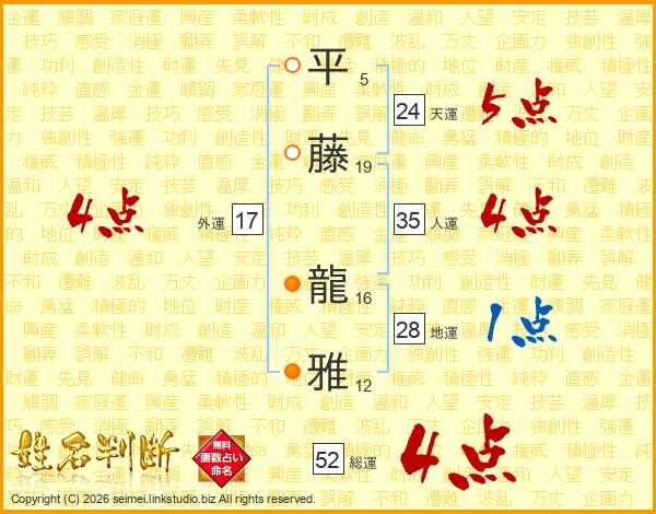 平藤龍雅さんの総運は52画の4点!