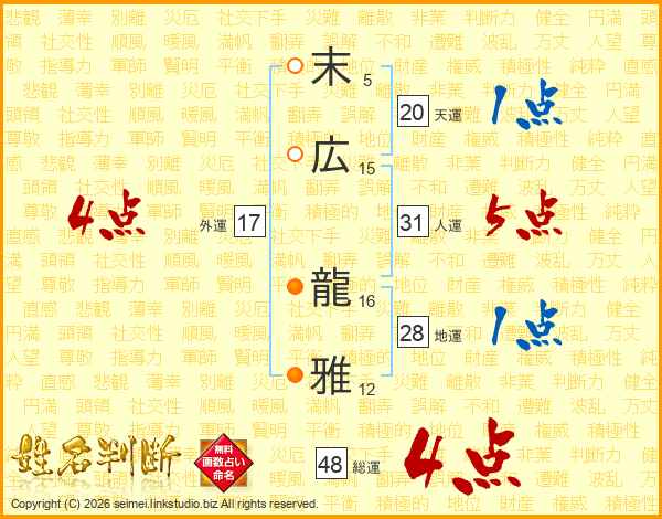 末広龍雅さんの総運は48画の4点!