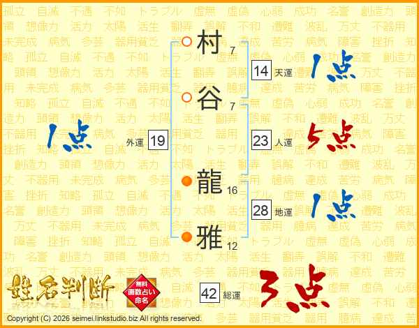 村谷龍雅さんの人運は23画の5点!