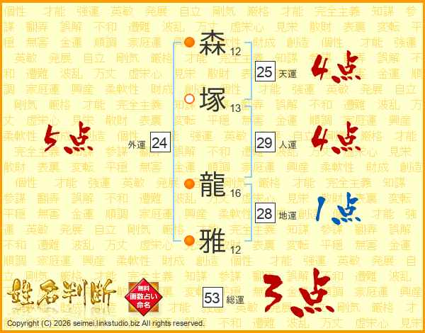 森塚龍雅さんの天運は25画の4点!