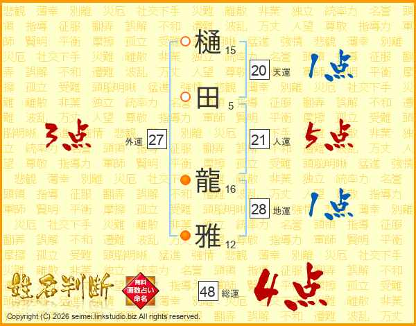 樋田龍雅さんの総運は48画の4点!