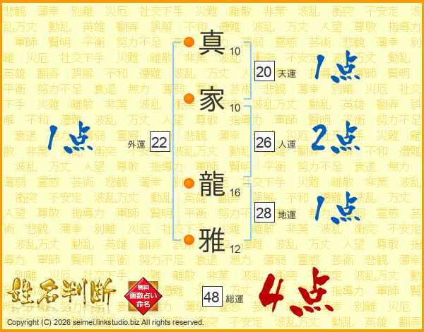 真家龍雅さんの総運は48画の4点!