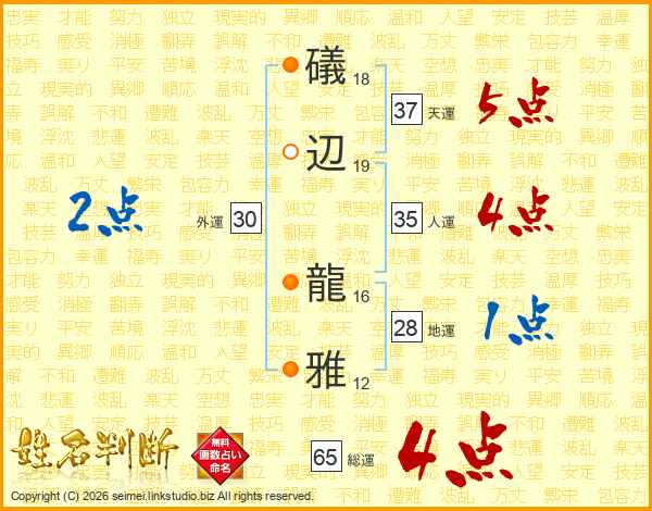 礒(18画)辺(19画) 龍(16画)雅(12画)