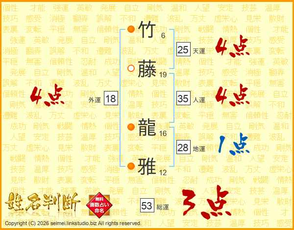 竹(6画)藤(19画) 龍(16画)雅(12画)