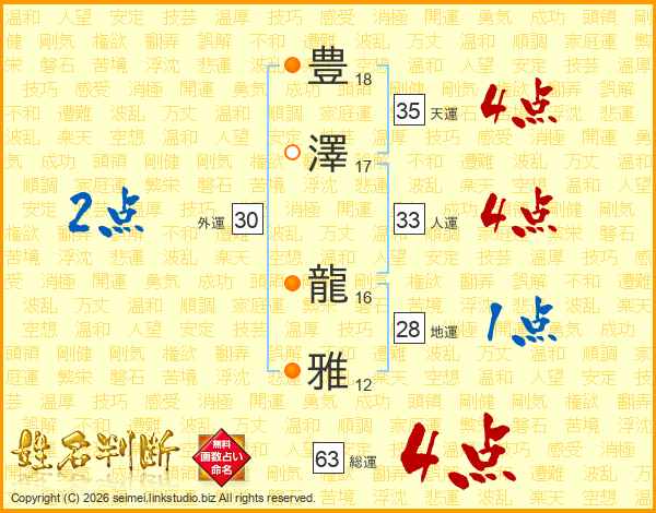 豊澤龍雅さんの総運は63画の4点!