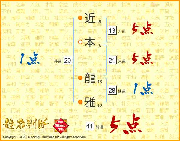 近本龍雅さんの総運は41画の5点!