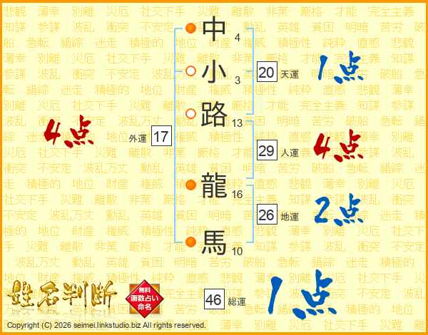 中小路龍馬さんの総運は46画の1点!
